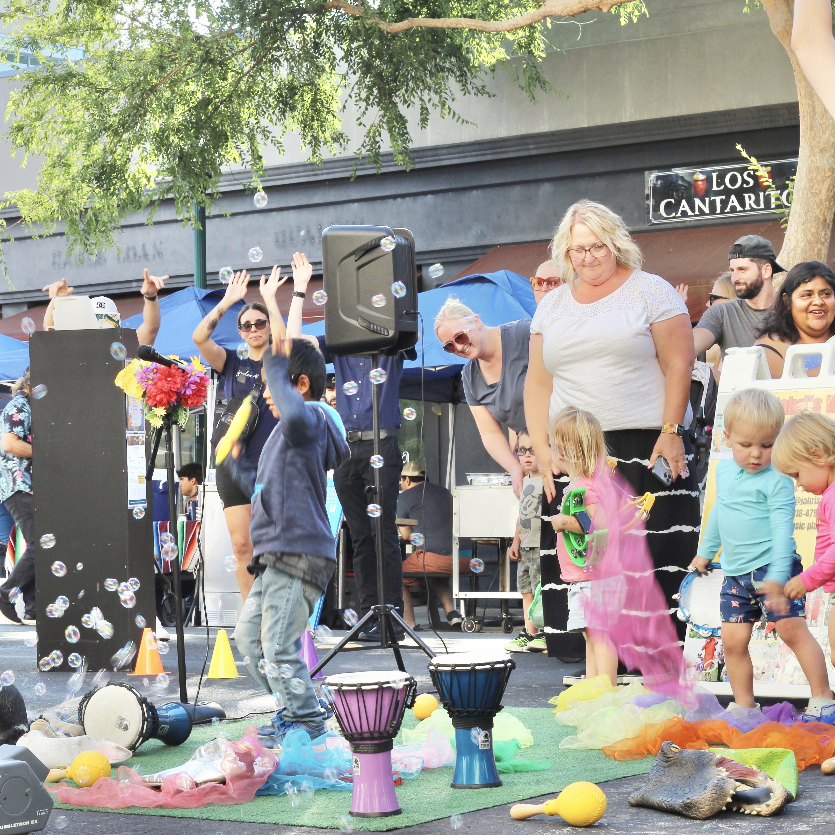 From backyard birthdays and preschool celebrations to festivals, fundraisers, and neighborhood gatherings, we transform spaces into playful musical environments where children and caregivers sing, move, dance, and connect together.